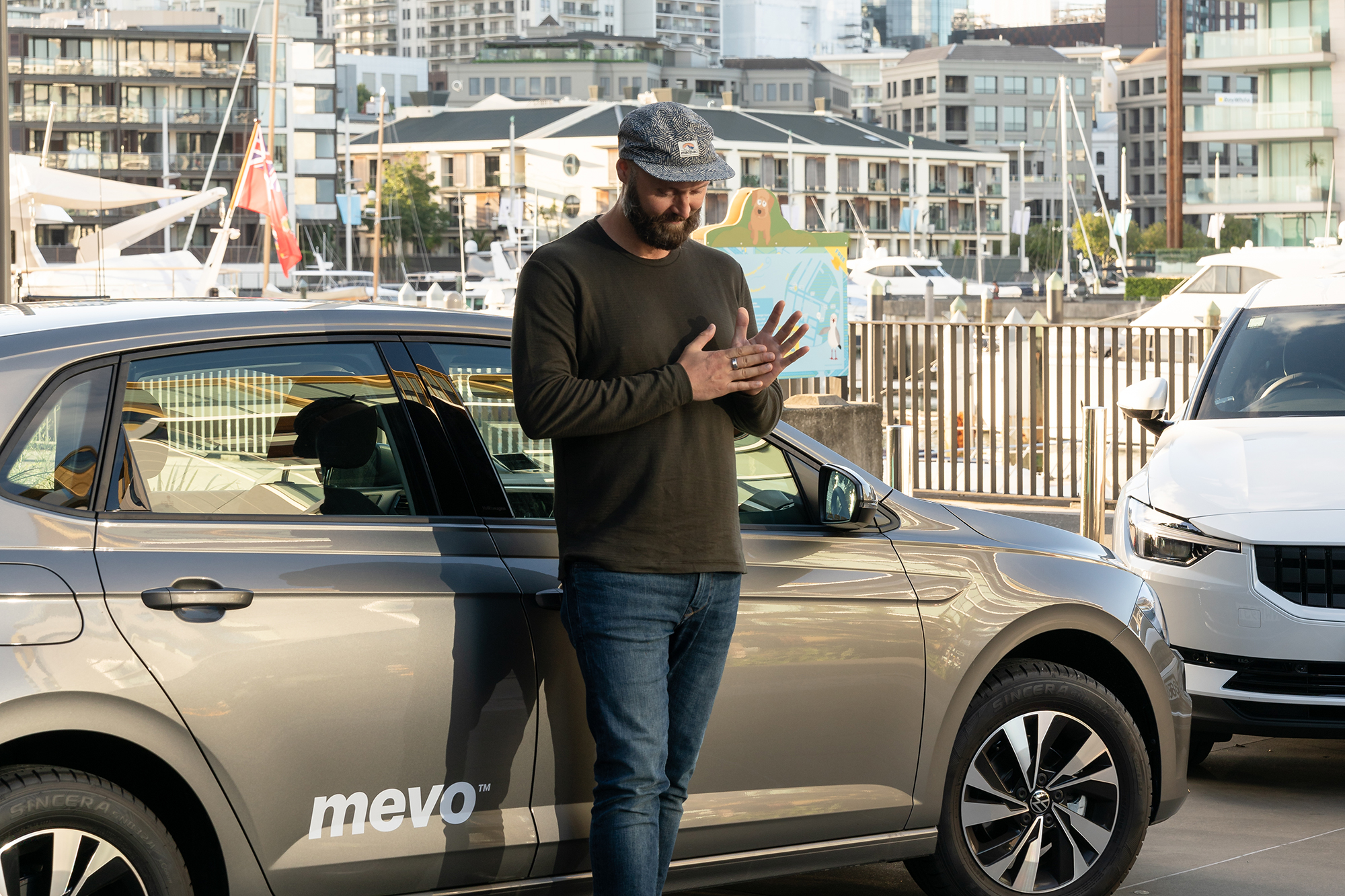 Okay, so here’s a fact I think is completely crazy: on average, your car is sitting unused 96% of the time, but it is the second-largest purchase you’ll make after buying a house, and you only use it 4% of the time! To me, that is mind-blowing. Until we launched, though, people didn’t really have an option. You needed access to a car which meant buying one. We knew there was a better way, and now tens of thousands of Kiwis have ditched their private cars or are selling down their work fleets to use Mevo’s network. We surveyed our users with Wellington City Council and found out that for every Mevo out there, 11 private cars have been sold or not bought. So we have directly influenced more than 1000 cars taken off the roads. This means we are genuinely redesigning the way people choose to move — this is where the name came from, swapping the ‘e’ and the ‘o’ in the word ‘Move’ to get to ‘Mevo’.