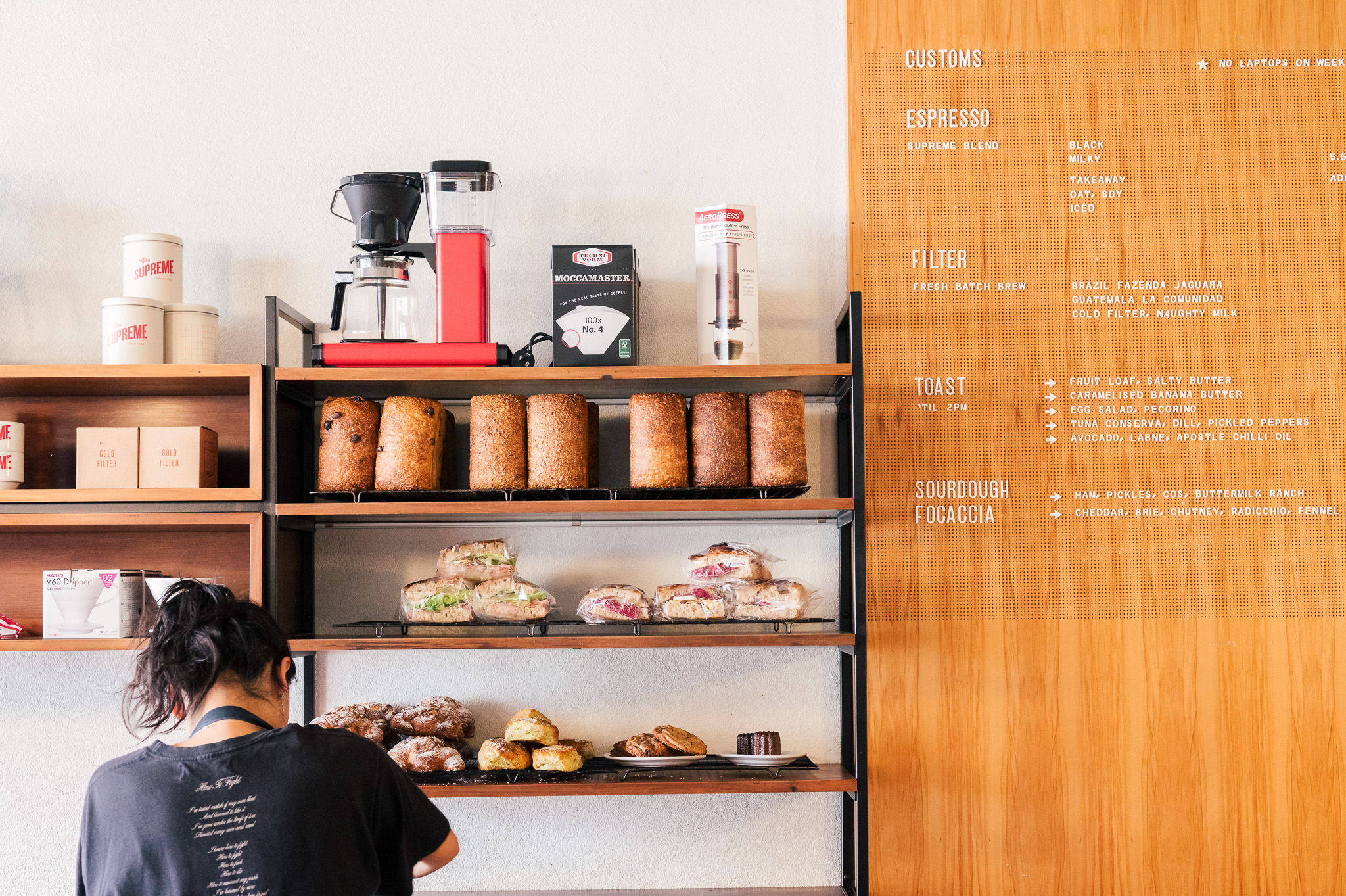 The food offering slowly evolved to where it is now. We had dabbled with various suppliers — always Coffee Supreme customers who were much better at the food side of things than we were. Long-time visitors to Customs will fondly remember the chicken quesadillas and cherry pie, and it wasn't long until this was no longer financially viable that we started exploring something that we could achieve in-house.