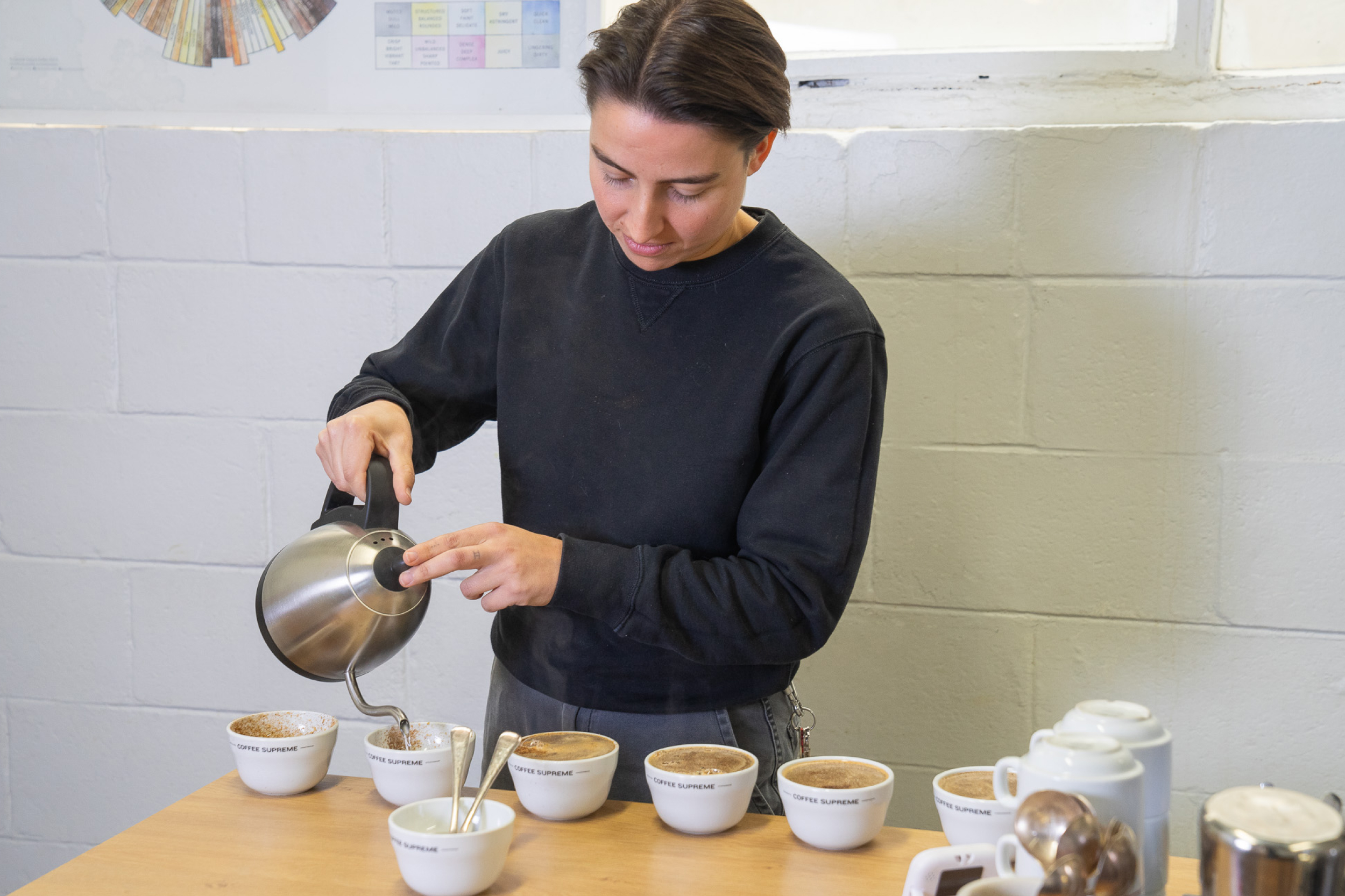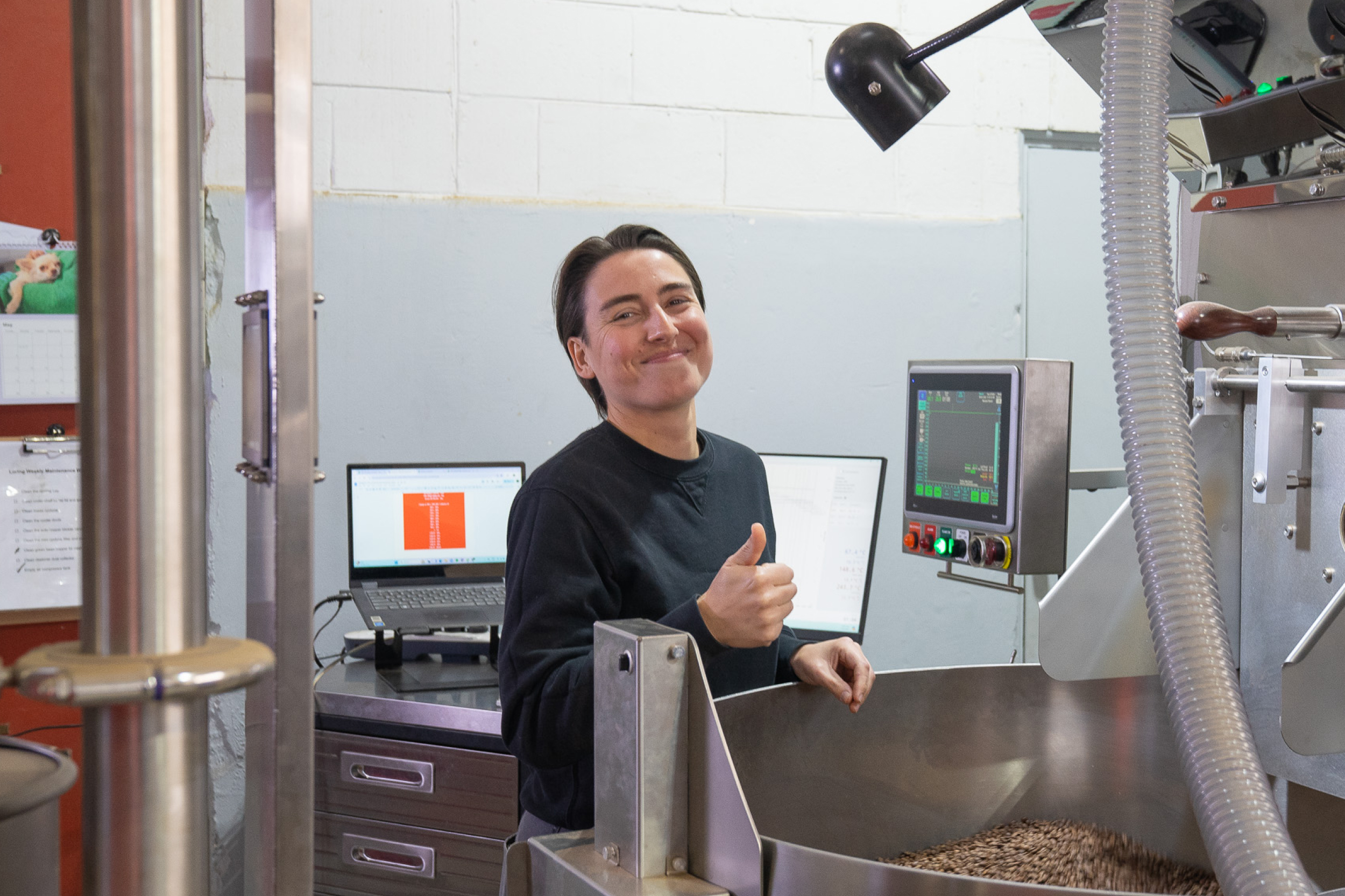 A: Like most people, I like to start my day with a coffee — so I tend to start my day qc-ing (quality control)/tasting coffee we’ve roasted the days before while the roaster warms up. Once I’ve tasted the coffee, I can start the day with an insight into how our roast profiles are working and if we need to make any adjustments. After this, we’ll get all of the production roasting done for the day. Once production has wrapped up, we spend our time restocking our green coffee, getting through any cleaning and roaster maintenance tasks, and more qc-ing.