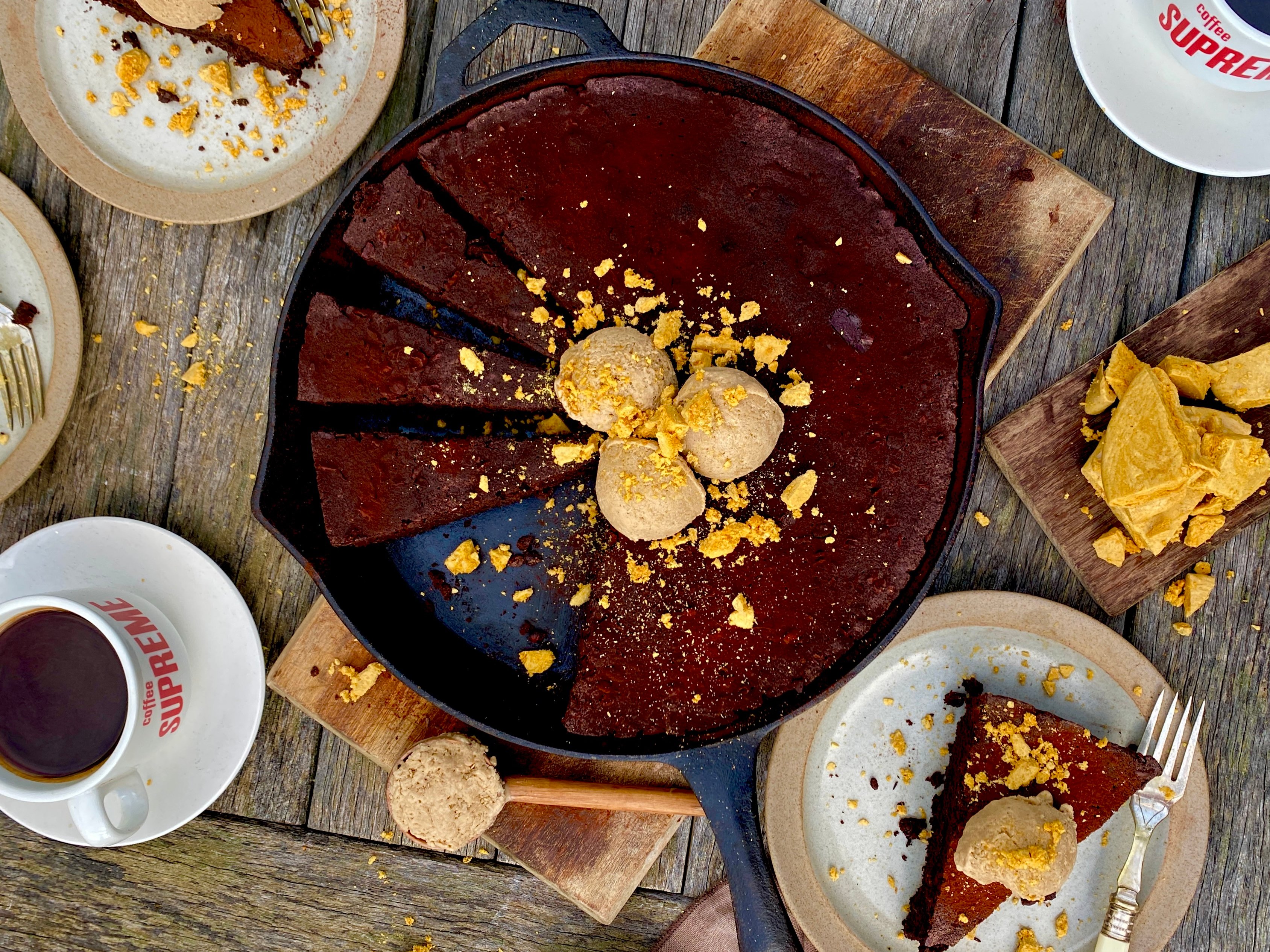 In this show stopper of a pud, you'll see Coffee Supreme espresso and Instant coffee combine with lashings of chocolate to create the fudgiest brownie you’ll ever eat. Served with creamy coffee ice cream and crunchy honey hokey pokey, it’s a feast for both the eyes and the tastebuds!