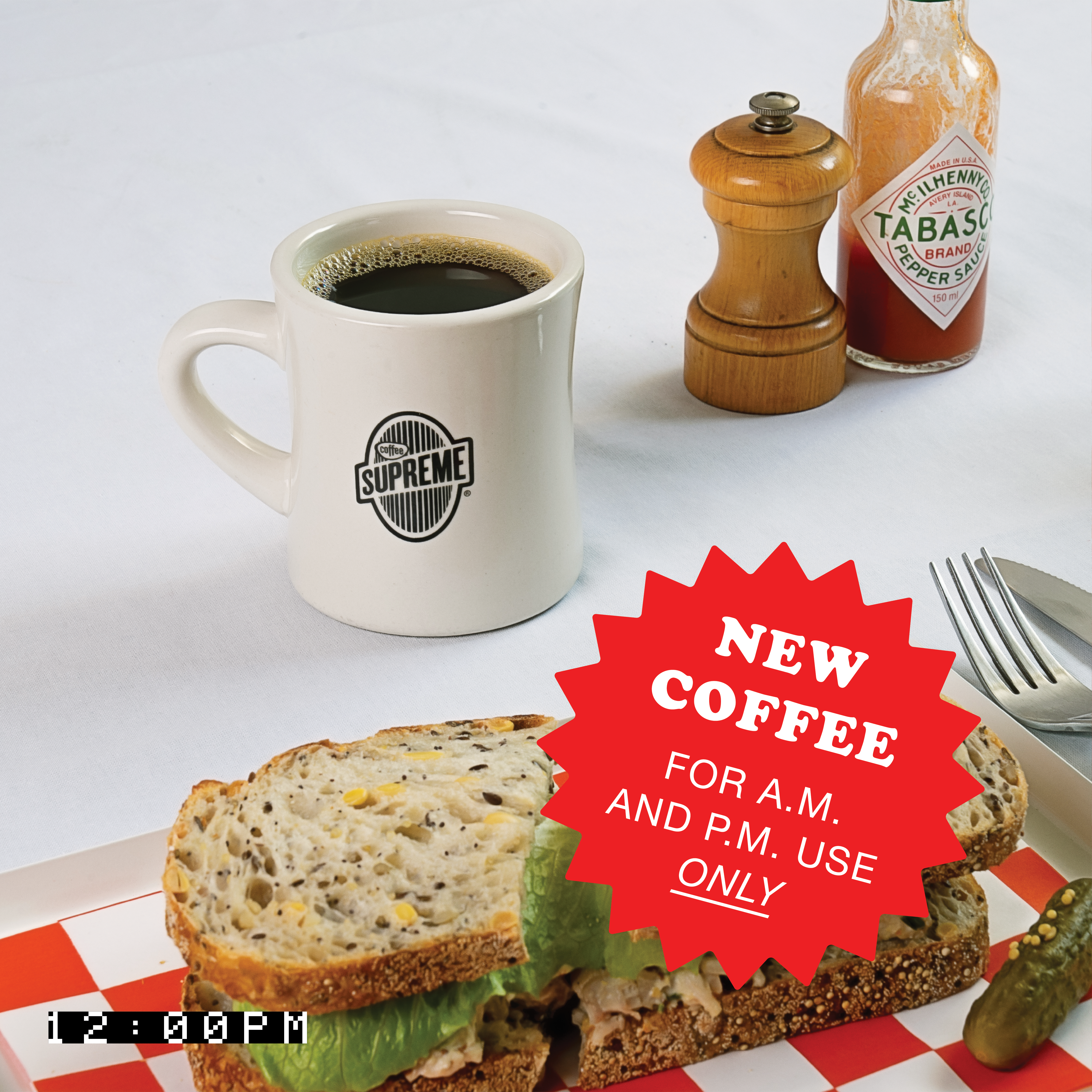 Our new 50:50 blend of Supreme Blend and Decaf, now goes by the name of AM:PM. A massive congrats to Dan Purnell, from Melbourne, for his wordsmith skills. We love it, the majority of you loved it and we reckon it’s pretty fitting.