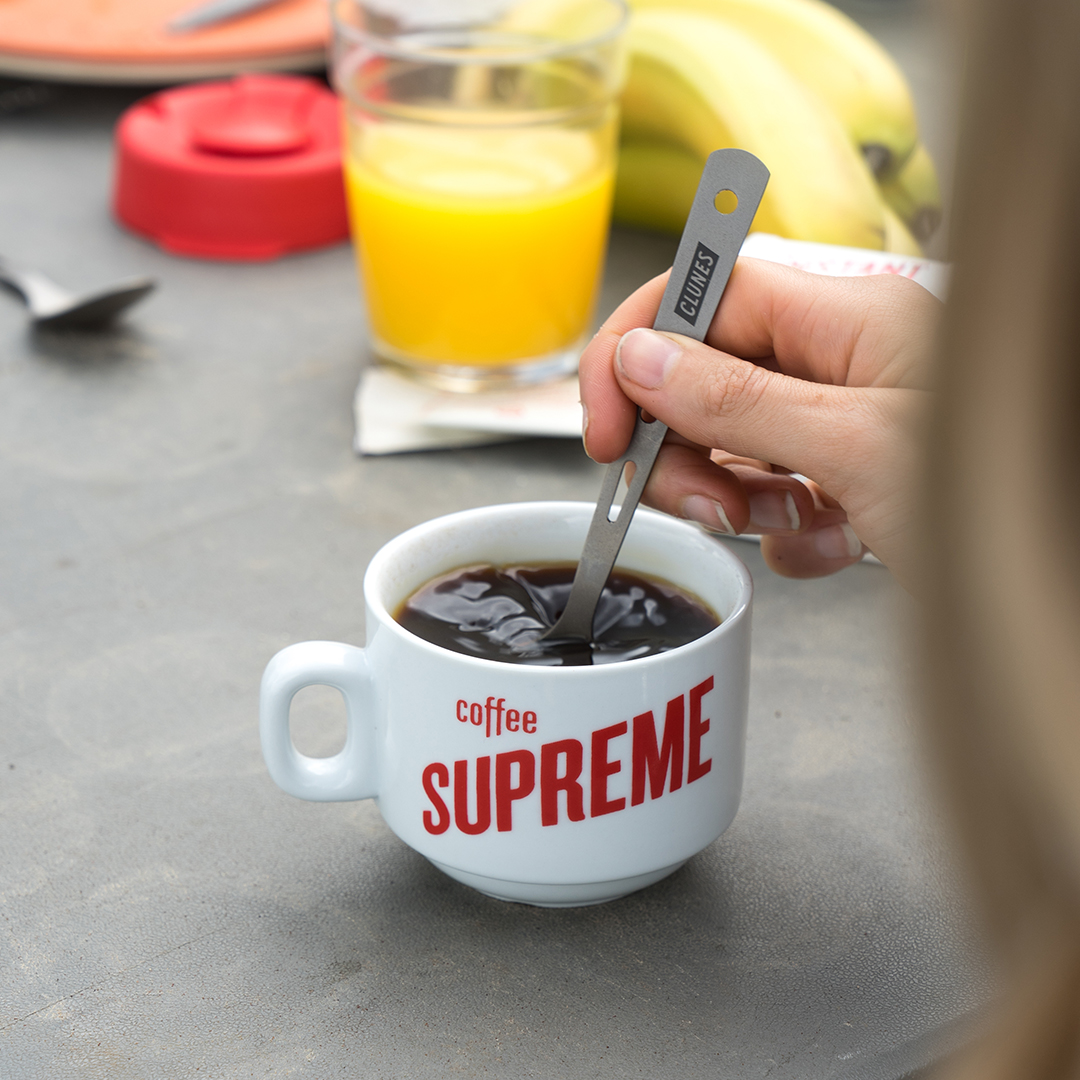 Designed to fit neatly under an AeroPress, sit snug on your shelf, or stack high with its matching mates. Light, compact, and proudly Supreme.